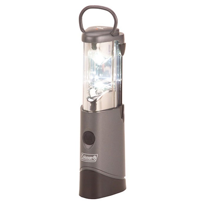 Lightweight lantern goes anywhere. Cree XLamp XR-E LED - 80 lumens on high. Run time up to 14 hours on low and 8 hours on high. Easy push-button switch. Four-position switch Off/Low/High/Emergency Strobe. Sliding reflector projects light forward for path lighting. Space-saving handle nests against top cap. Operates on three Alkaline AA cell batteries (included). Dimensions: 6.4" x 2.2" x 1.7". Weighs 7 ounces with batteries.