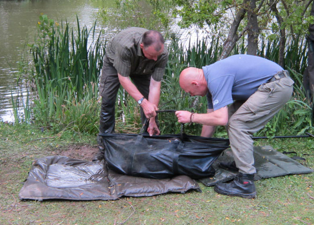 It then became apparent how large this fish was. As my scales only go to 60lbs I phoned the office at Wintons to see if they had a larger set and if they would like some pictures of this big Catfish. The Bailiff Stuart brought some scales round.