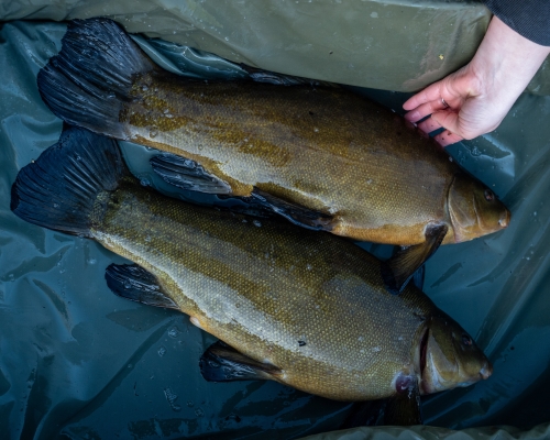 With only a few hours left before the sun got too bright, I stuck with the spot that had worked so well and I was rewarded with another tench. By mid-morning, though, the lake started to slow down as the sun broke through, typical tench behaviour. It was time to call it a day.