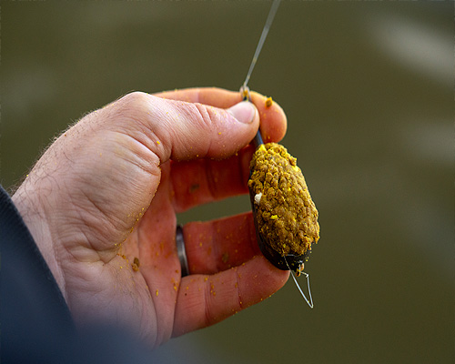 Down at the business end, I have a hybrid style feeder as these are incredibly aerodynamic and will use a combination of the heavier 45g and 60g sizes as these allow me to compress the feeder rod on the cast. Lastly, I use a short 4” hooklength with a size 12 hook with a boilie spike hair rigged so I can easily attach a range of wafters and boilie style hook baits.