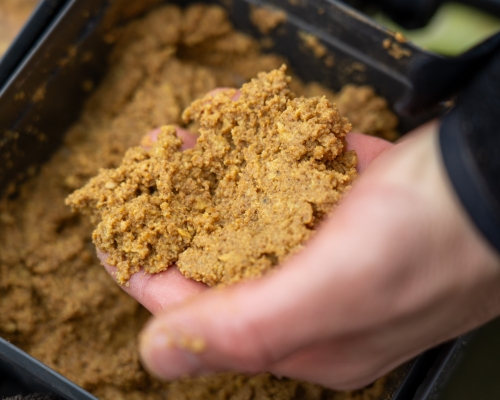 When I want to really boost the attraction in my peg, especially if things start to slow down, I’ll turn to mushy meat. This is created by breaking the meat down into very fine particles by grating it against a bait riddle, adding water, and mixing it with groundbait to form a mushy paste. It creates a cloud of attraction in the water and can be incredibly effective at pulling fish into your swim. It’s particularly useful when fishing down the edge or when you need a bit of a kickstart in the swim. It's very important to use it sparingly. A small amount is more than enough to generate a rapid feeding response.