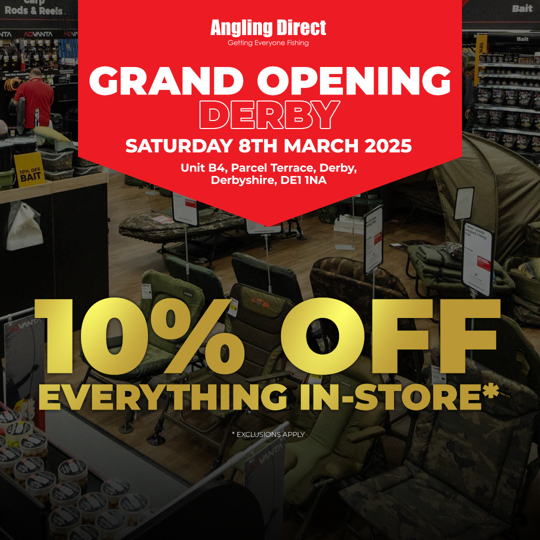 We’re thrilled to announce that Angling Direct Derby is now open! Bringing the UK’s leading fishing tackle retailer to the heart of one of the country’s finest angling locations. To celebrate, we’re hosting a Grand Opening Event on Saturday 8th March, where all anglers can enjoy exclusive deals and a chance to meet some of the biggest names in the business!