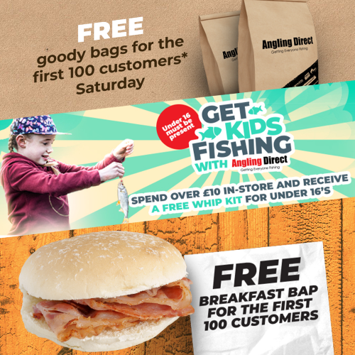 For the grand opening of AD Grimsby, we are offering customers who attend, some exclusive deals that will run for 1 day only, with up to 50% off selected MyAD products for MyAD members and 25% off products from our Advanta brand. There are 100 goody bags up for grabs for the first 100 customers to spend £20 or more and hidden within 9 of them will be a Golden ticket with a chance to win big prizes including 3 x £100 Angling Direct Gift Cards, a Pike Pro Rod, an Advanta Bait Bundle, a Fjuka Bait Bundle, an Evolve Tackle Bundle, an Evolve Terminal Bundle and a Westin Escape Cam.