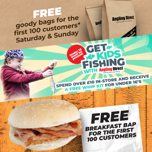 Not only that, this open day is the perfect chance to get kids involved, especially with our "Get Kits Fishing" offer running over the Grand Opening of Angling Direct Stourport-on-Severn, where you receive a free whip, which is perfect for anglers looking to catch their first fish, when you spend £10 in store.
