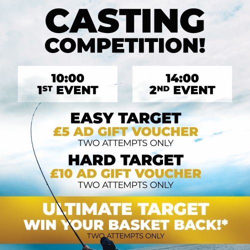 We will be giving away free breakfast baps to our first 100 customers and also holfding two distance casting competitions over the course of the day with AD gift cards up for grabs!