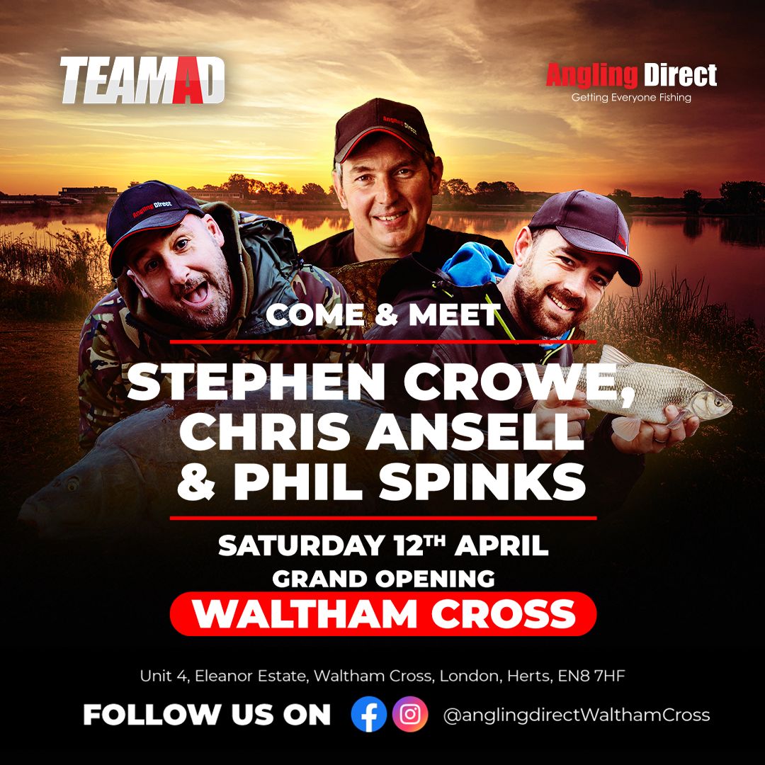 To celebrate the refit of our Angling Direct Waltham Cross store, we are hosting a Grand Opening Day on Saturday 12th of April! With several one off deals, competitions and special guests, this grand opening is not one to be missed! With the store located close to several day ticket venues and club waters, why not pop in on your way out to go fishing!