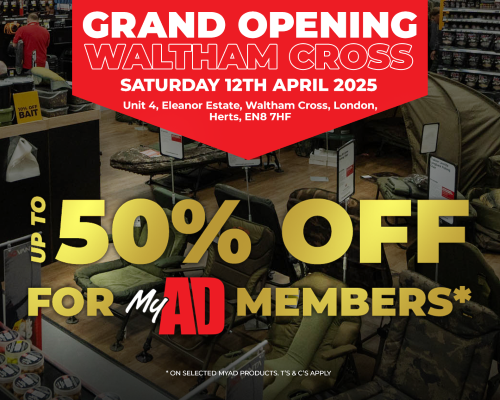 As if the prospect of a shiny new Angling Direct store to have a look around wasn’t enough, for this grand opening of AD Waltham Cross, we are offering customers who attend the open day some exclusive deals that will run for 1 day only, with up to 50% off Selected MyAD products and 25% off selected Advanta products. *Terms apply