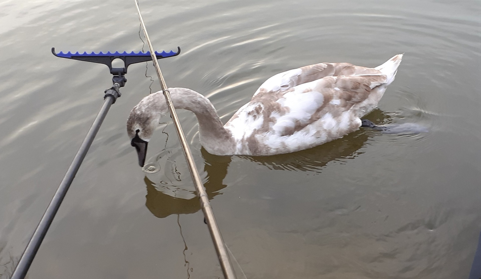 When not much is happening it’s easy to become distracted. I was watching a young swan expertly duck under my rod as it carefully picked up odd bits of feed that had fallen from my feeder when casting. You see a lot of birdlife on this complex, including woodpeckers and kingfishers, along with tame robins and blackbirds that like to pinch bait off your side tray. I was obviously not concentrating because I felt, rather than saw, my next bite, as my quivertip rod nearly got pulled from its rest!
