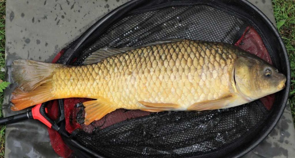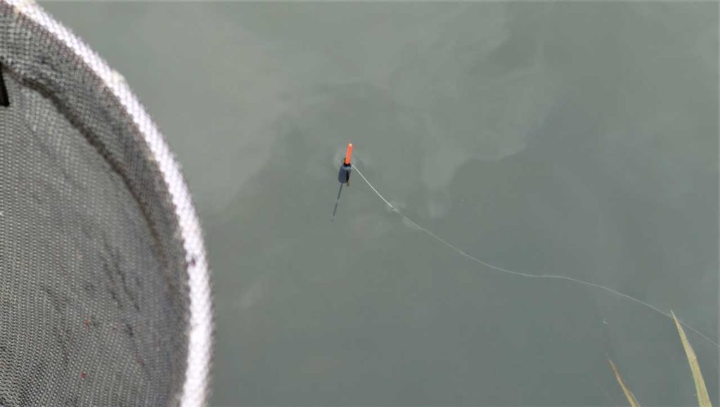 With all this activity, I had my landing net poking out over the water, ready for action. I suddenly noticed a huge tail upending right underneath it. There was a big fish down there, rooting about for bits of bait that had fallen in the water earlier, when I was loading up my feeder. I quickly shallowed my margin rig up, dropping it in alongside my net, throwing in a few pellets. The float buried almost instantly.