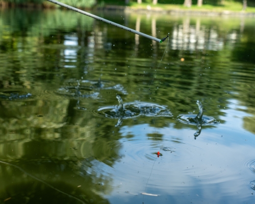For the shallow approach, my rig is relatively similar, green slick elastic, 0.18mm mainline, and a short hooklength with a size 12 hook. The only difference was the float: a 0.2g Matrix dibber with three No.8 shot just above the hooklength to imitate that all-important plop noise of pellets going in asit hits the water.
