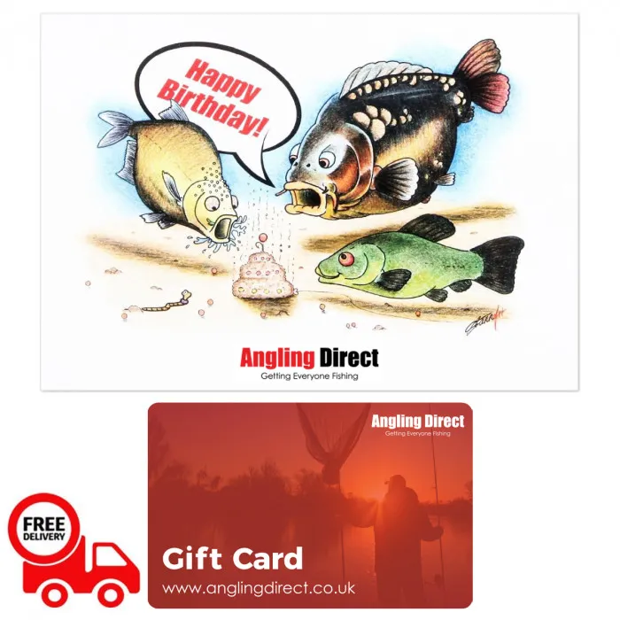 To further personalise your gift card, you can buy gift cards sold with an Angling Direct greetings card. For Christmas, Birthdays and Celebrations we have the talented artist; Stann Art illustrates clever carp art for you to add your personal message to.