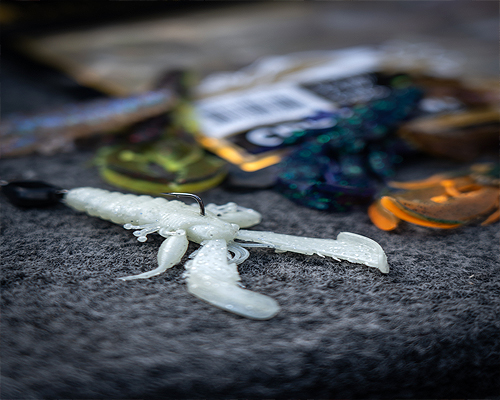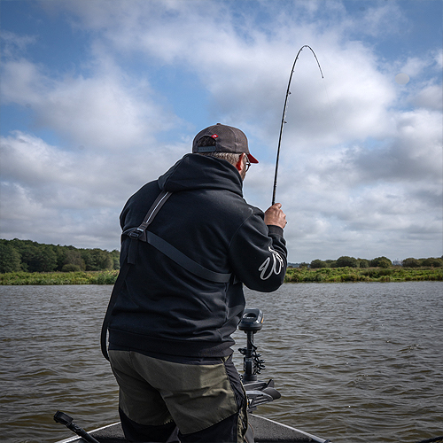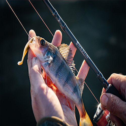 A 2-10g Tungsten bullet weight (I love the Westin ones as they have a silicone tube in the centre, protecting the line) and a Westin Crecraw 6.5cm on an offset ‘Weedless’ hook. Nice and simple but deadly, I’ve caught crazy numbers of 3lb+ and 4lb+ perch on that set up. I personally love dark coloured baits and Watermelon Red or Black/Chartruese are firm favourites. The tungsten gives incredible feedback through the rod, allowing me to tell the difference between gravel, silt, weed or mussel beds, and even if I need a heavier weight due to depth of water of strong winds, the sliding nature of the Texas weight allows positive bites to be detected