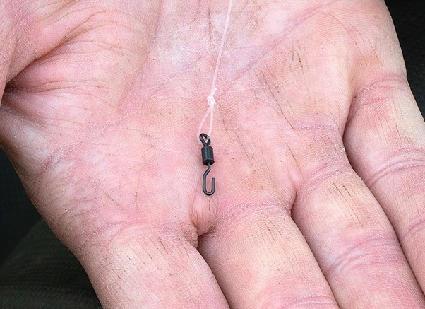 Step 1: Cut required length of IQ2 fluorocarbon then attach the spinner swivel using a small figure of eight loop.