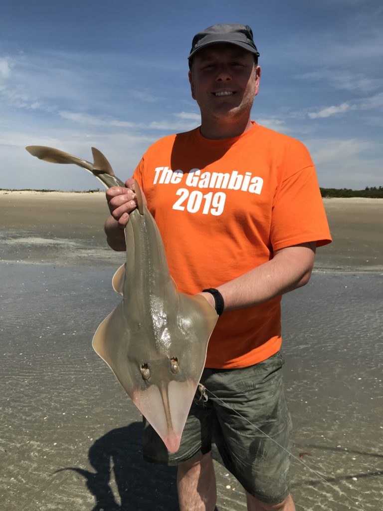With the pre arranged transport picking us up at 9am the next morning we headed out for a well needed beer and some food. We had planned to fish a beach near Banjul on the first day; we knew it was going to be slow, but with the chance of a big fish. This beach fished well normally on the ebb so we were hopeful of some action. It was slow and only myself and Shaun caught small cassava. But there was a surprise with Shaun catching a cuttlefish, which is another first for us.