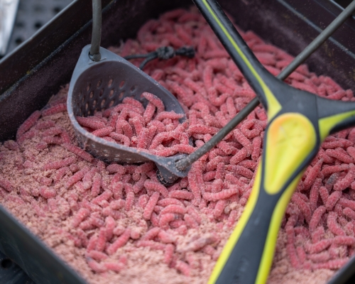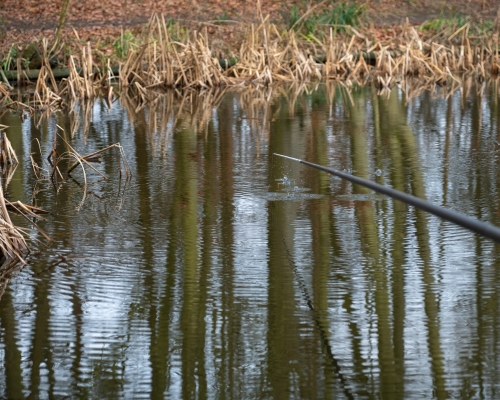 It's very important in these conditions to keep a trickle of bait falling through the swim. A catapult allows you to deliver small quantities of bait accurately and regularly. This session, I focused on feeding 4mm pellets and maggots using a Matrix catapult with the heavy elastic which is ideal for baiting at pole range.