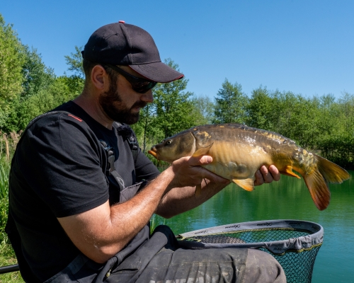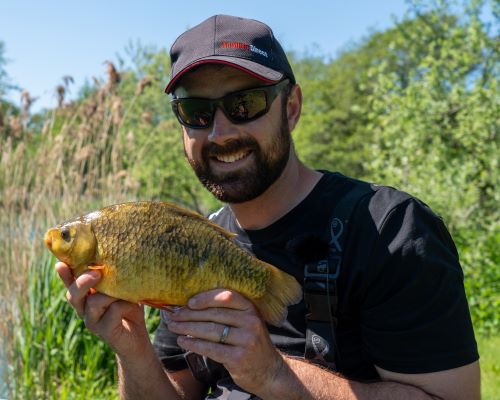 As the session went on, I kept repeating the tactics, maintaining discipline by casting on the bite times and keeping the pressure on the swim. My original plan was to try for a larger fish to finish the session on but right near the end, after chatting to the lake's new owner who mentioned the presence of true crucian carp in the lake, I was lucky enough to catch a beautiful crucian of around 2 pounds a very special fish indeed and increasingly rare these days, the perfect one to end on.