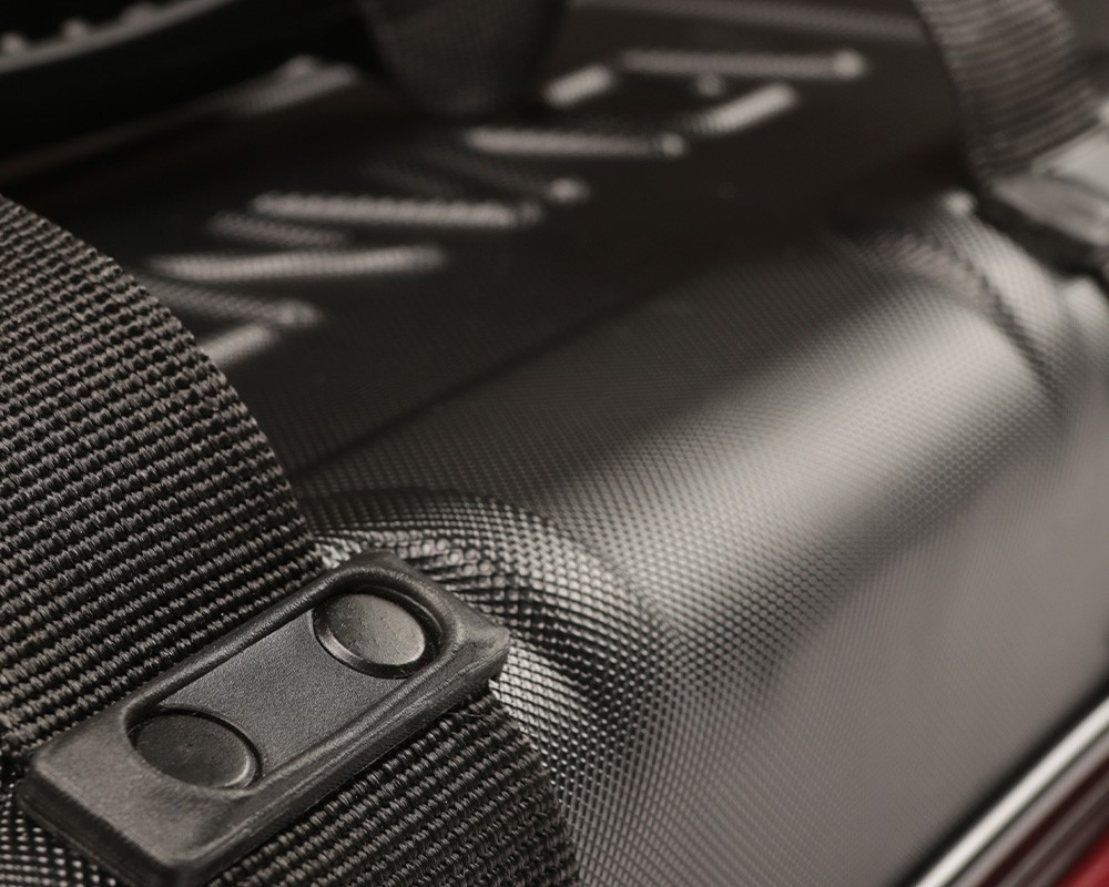 Separation and securing is also well considered with a pocket for half extensions, removable partition flaps on each half and a padded central partition. For transport and handling, Daiwa have applied interlocking carry handles, a removable padded shoulder strap and a ‘grab’ loop strap for pulling forward or loading up more easily. The mesh pockets at the base and elasticated cross straps, also keep everything safely contained when opening.