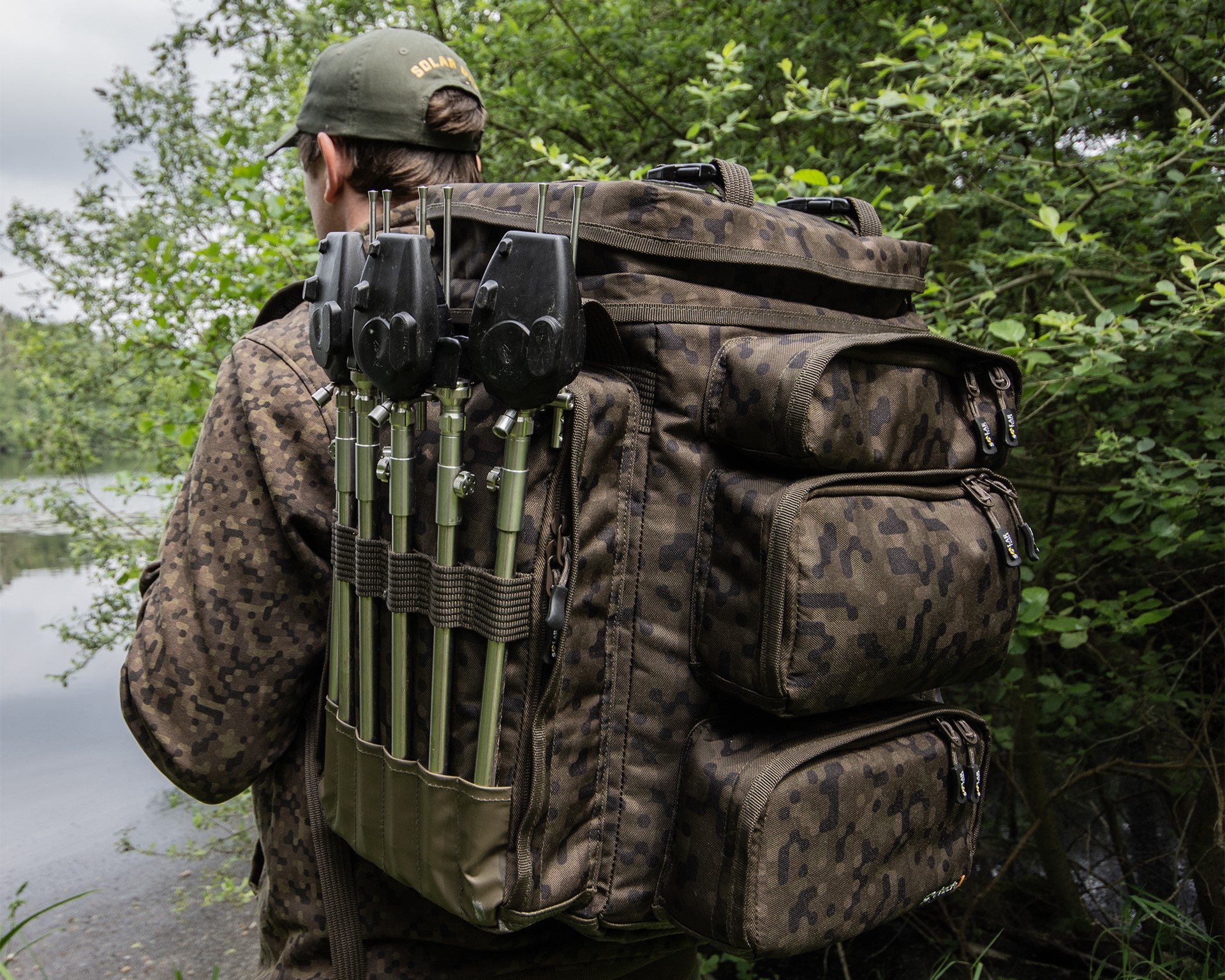 The ‘not-too-small, not-too-big’, free standing rucksack bares the SP C-Tech Marque because it means no compromises on materials, performance, and Solar functionality. The ergonomic, self-ventilating AirStrap harness eliminates moisture and 'Solarspension' means the harness has shock absorbers. The full bag is swathed in SolarCam digital camo. It's even hewn from G-Tex, Solar's own high performance, recycled fabric.