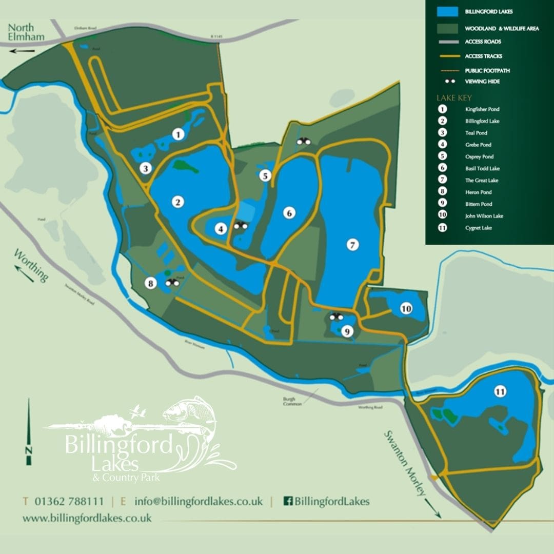 Address: Billingford Lakes, North Elmham Road, Billingford, Dereham, Norfolk, NR20 4RG