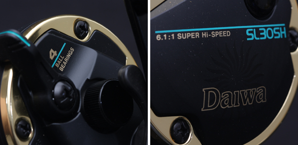The reel has three bearings and brass gears and side plates. Mag casting control adjustment is achieved via a sliding switch on the top of the frame on the side opposite to the reel handle. The centrifugal brake system is on the handle side of the reel.