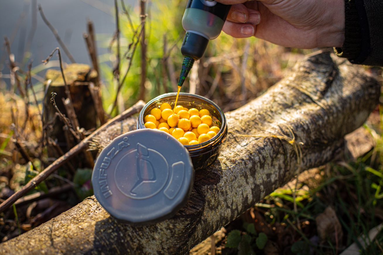 My single hook baits will be soaked in Korda goo, often for months. The Korda Infuza pots are the best I've used as they don’t leak, the last thing you want is a bait bag full of goo!