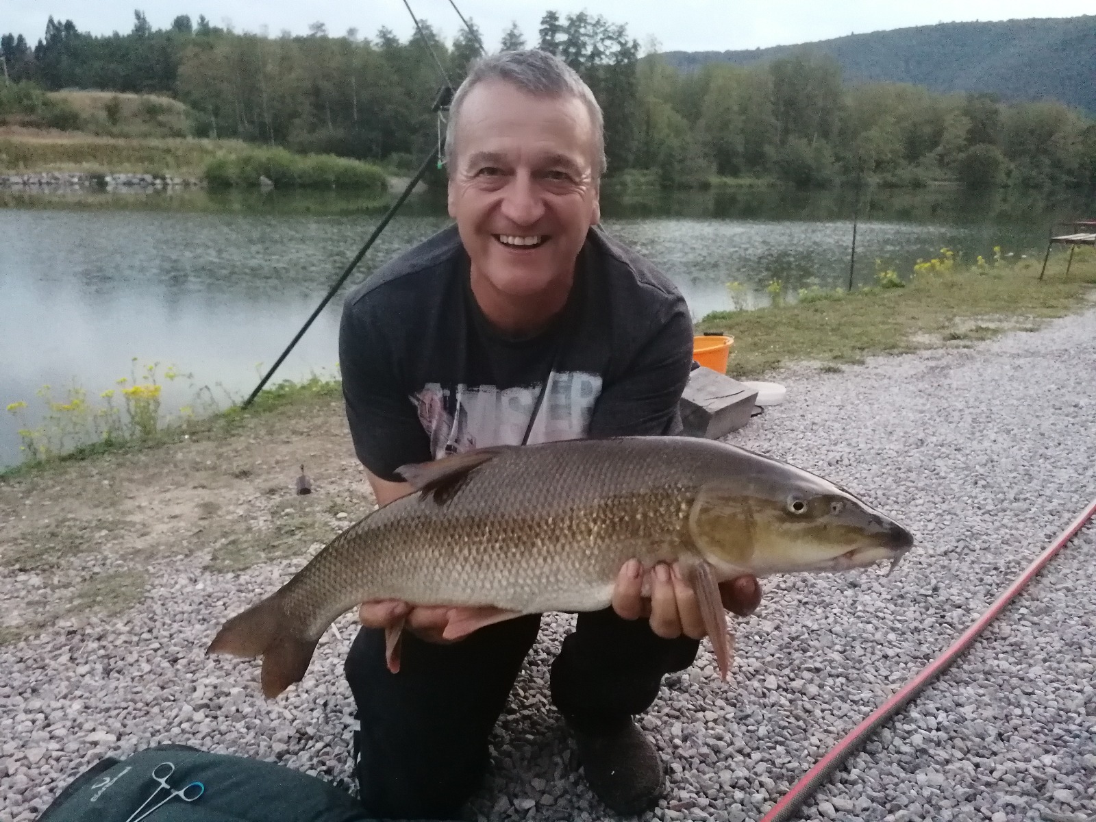 With daytime temperatures getting into the mid-30s over here in France, fishing has been best at first light, early evening and right through until around midnight. The carp have done a complete disappearing act during the day, leading my good mates, Bob and Doug, who were visiting in pursuit of carp, going home carp-less. However, they did catch plenty of barbel and chub! Doug had a misfortunate incident of his fishing rod being pulled in after a savage run, but luckily after a bit of searching around with a big hook and lead he managed to snag and recover the rod, minus the could have been carp.