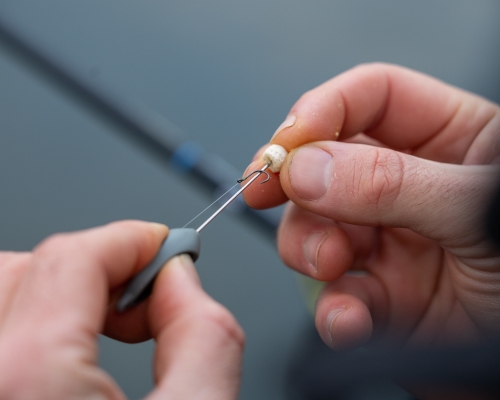 For the hookbait, I punch out three small discs of bread and give them a gentle squeeze so they stay on a bit better during the cast. Hair-rigged on a quick stop, the bread lasts surprisingly well and often survives multiple casts.