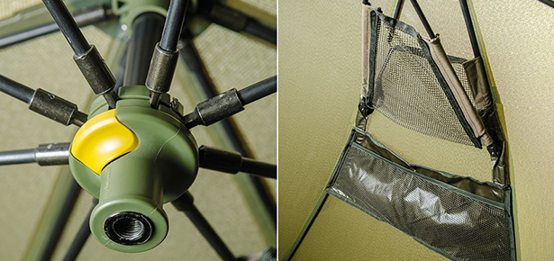 Two internal mesh pockets can store all manner of items, including valuables or remote receivers and, cleverly, the draught-excluding flat at the back is extended by a couple of feet. Although this sounds like a basic feature, if you choose not to use the supplied heavy-duty half groundsheet, there’s a large area behind the bed chair to keep things off the wet or muddy ground - a real help for anyone with camera kit travelling as light as possible, for example.