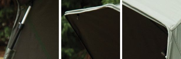 The Solace HD is made from Extremis HD 10,000mm Hydrostatic material, which is waterproof and very durable. The ribs are made from very strong fibreglass ribs, four of which touch the floor when set up, making it very stable when pegged down.