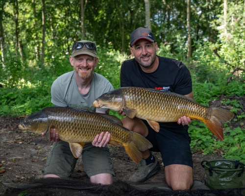I then flicked the controller float rod back onto the same spot and, only 76 seconds later I was into one myself. We got a great photo of ourselves holding up an awesome brace of commons one just over and one just under the 20lb mark.