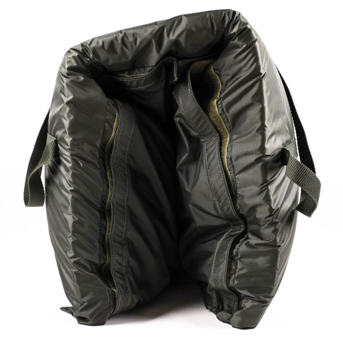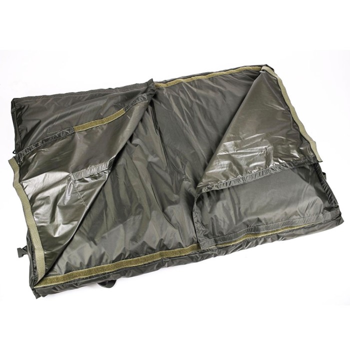 Waterproof outer with split top flaps, stitched at ends with Velcro side fastenings.