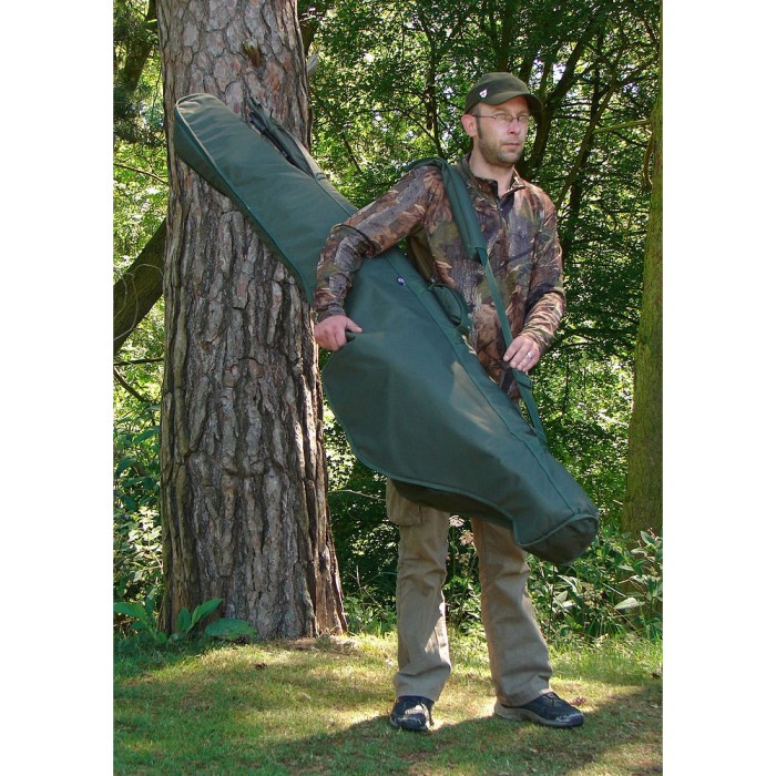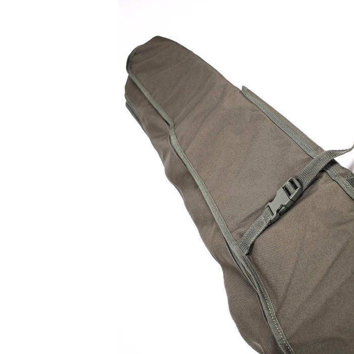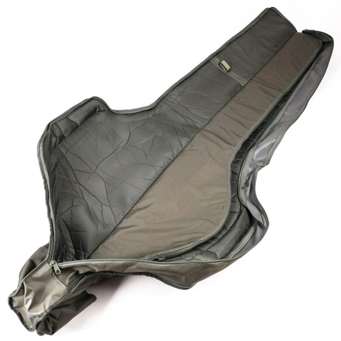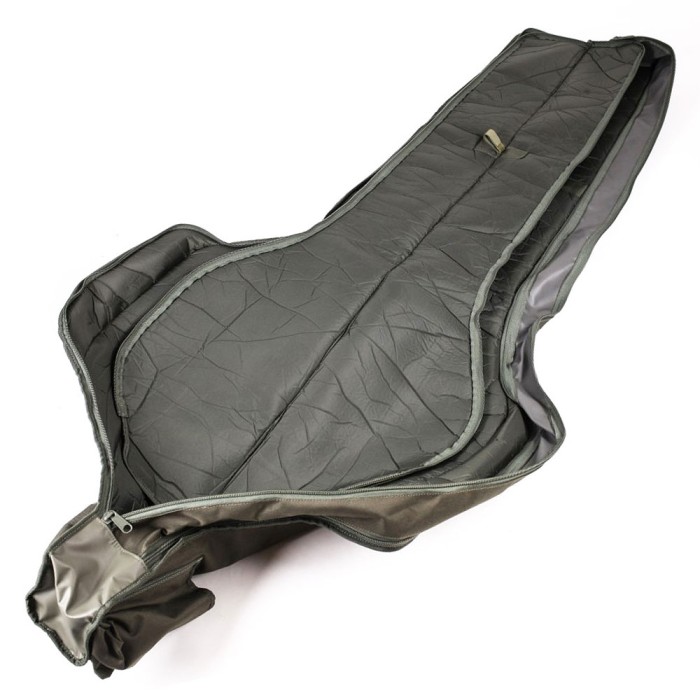 These very popular, light weight rod holdalls are available in two versions to accommodate either up to three rods or up to five rods. This is done via a double zipped easy access gusset, the outer rods are held in place via Velcro tabs, the central rods have their own padded zipped sleeves and butt pocket. Externally there is an open landing net pocket and reinforced flapped and zipped bank stick pocket. On the reverse is a small cupped pocket and an adjustable webbing strap which will accommodate a brolly if necessary (note: only available on the 2/3 holdall). Also a spine pocket for landing net pole and a generously padded carrying handle and shoulder strap.