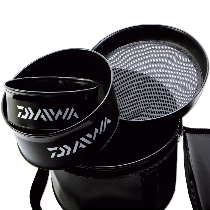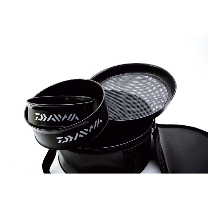 The plastic riddle sits inside the rigid rim leaving allowing bait to riddle through and ensuring clearance underneath during transport. Also included and available separately are two EVA bowls of 30cm and 24cm diameters.