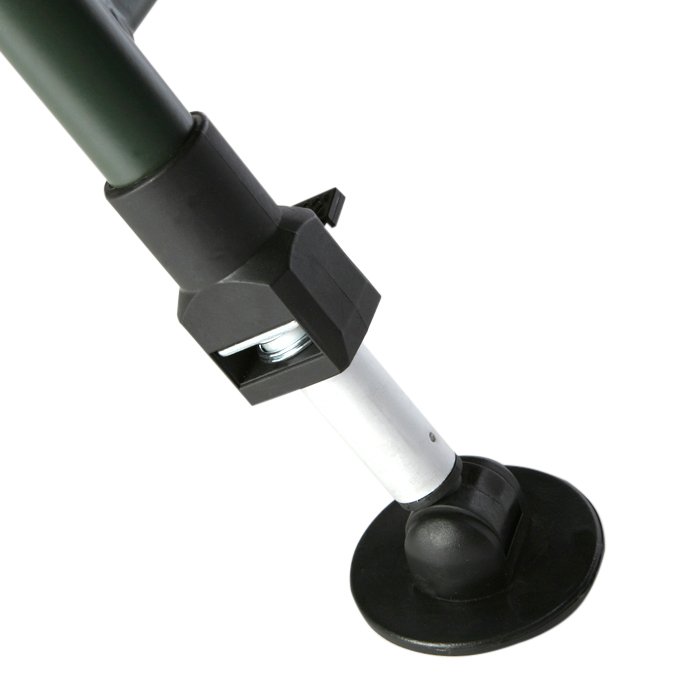 Both the black widow chair & bedchair are designed around a steel frame, featuring a cushioned seat and backrest plus extendable legs with swivel mud feet. The leg lock system ensure stable assembly and both fold to a compact size for easy transport with the bedchair having a webbing strap with a click lock buckle.
