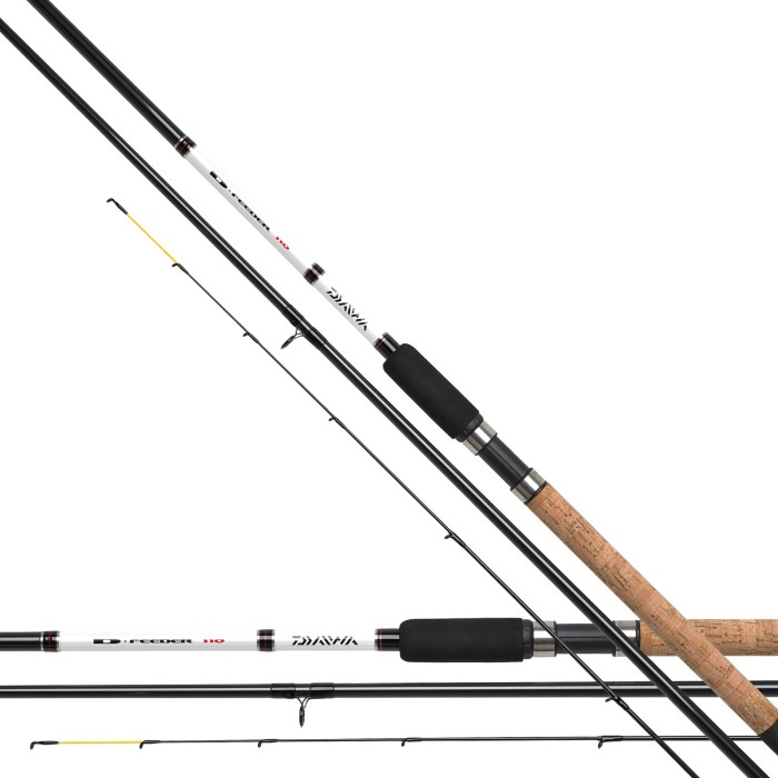 The Daiwa D-Feeder Rod has a length of 11ft. The rod is extremely versatile. Long enough to allow you to cast out to distance ridges. The rod is compact enough to target the near side margins. Other feeder rods focus on casting power, the Daiwa D-Feeder Rod is a fish playing machine. This ensures that it is a joy to bring in hard fighting carp, as well as other powerful coarse fish. As with all the rods in the D-Fish range this D-Feeder has a very classic look. The gloss finish black blank and classy cork handle will perfectly complement any reel that you pair with it. With the D-Feeder you can look as good as you feel on the bank.