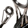 The Daiwa Emcast Surf is available in three exceptional lengths. The shortest of the series is a tame 13ft. Perfect for the traditionalist who doesn’t want to quite let go of the past and ideal for the angler who wants a multipurpose distance casting tool, this rod will let you hit most of the spots you want with little effort. The middle length rod in the range comes in at a handy 14ft. This extra length enables you to reach out further than other anglers on the beach and, when paired with a distance casting reel you can comfortably achieve all the areas you desire with relative ease. The final rod in the range comes in at a whopping 15ft. This ensures that you can chuck 4oz to 8ozs as far as you like and it really is a rod made for the angler who loves distance. Since the rod is so long Daiwa has coated the joints in grip paint. This helps to maintain the structural integrity of the rod when you receive an aggressive take at distance.