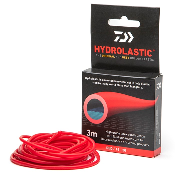 The Hydrolastic has a completely hollow construction. When it was first designed, this was a completely unique concept and, much like the adjustable elastic rating, it is a feature which many other angling companies have attempted to mimic with their ranges of pole elastics with limited success. This hollow space is then filled with a patented high performance fluid. This dual construction means that the fishing pole elastic stretches initially, but as the internal walls close in they are held apart by the fluid. This stops these pole elastics from over stretching and weakening, making it incredibly high wearing. In fact, this is one of the most durable pole elastics on the market causing anglers to re-purchase it time and time again as they trust so ardently in its abilities.