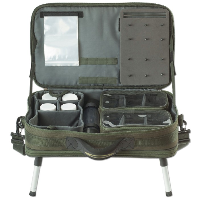 This innovative system features an integrated rig and tackle case, however the bivvy table can be removed and both parts can be used separately.