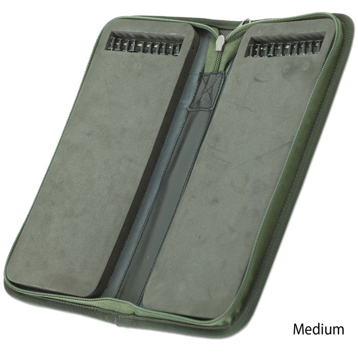 Offering the complete rig storage facilities the Infinity Rig Wallets are available in two lengths and featuring twin hard foam boards. The integral moulded bar protects hook points from damage and the small easy-grab pins keep your rigs neat and tidy.