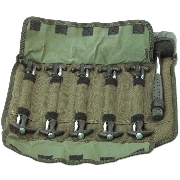 Includes ten pegs and rubber mallet, supplied in a handy roll-up pouch.