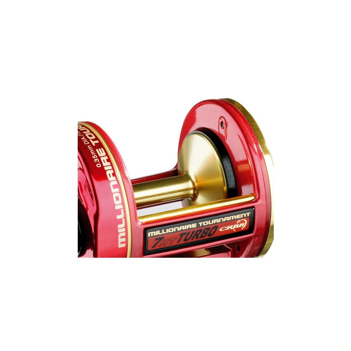 Because the pinion rides on its own separate shaft, the spool spins freely, unhampered by gear train friction. Assisting this spool speed even further are five bearings including four CRBB's. The result is an extended level of rotation and improved ease of distance. Sporting a bold colour scheme of red and gold the Daiwa Millionaire 7HT Turbo will certainly live up to its racy appearance.