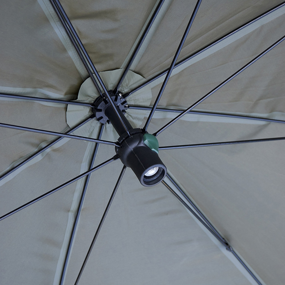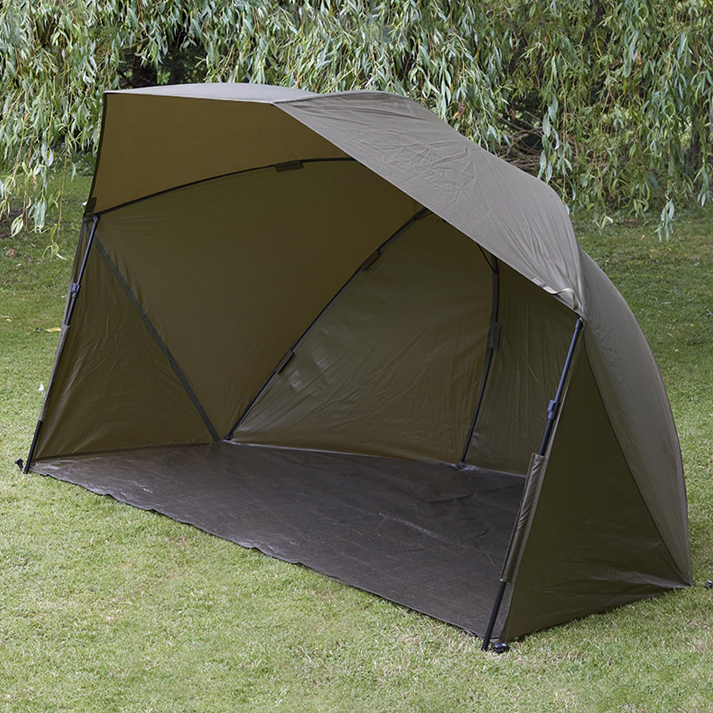 Constructed from an incredibly durable and waterproof 210D polyester material with taped seams, this Daiwa brolly will keep you dry even in torrential rain. The size of this brolly gives the angler adequate space for a bed chair and enough clearance to comfortably sit underneath. The depth of this Daiwa Mission Brolly allows you to store all your fishing luggage behind your fishing chair. Daiwa have also included a Velcro securing removable groundsheet with this brolly, which once set up offers added protection from the elements, ground water and mud.