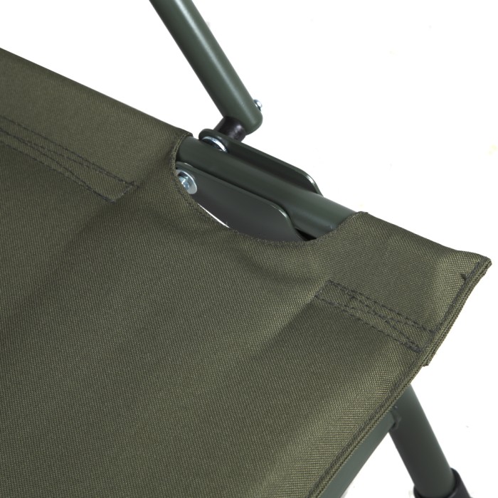 Low in profile but very comfortable this carp chair is provided of arm rests. Adjustable legs and mud feet.