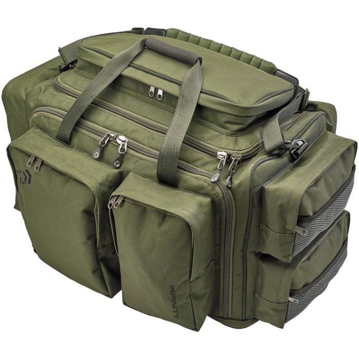 These 50 and 85litre carryalls feature 1200 denier fabric on the outside, as well as a removable padded shoulder strap. The 50lt model contains 4 external and 2 internal zipped mesh pockets, while the 85lt has 7 external zipped pockets with elasticated mesh pockets attached to each pocket, 2 internal mesh pockets and 3 detachable internal pouches.
