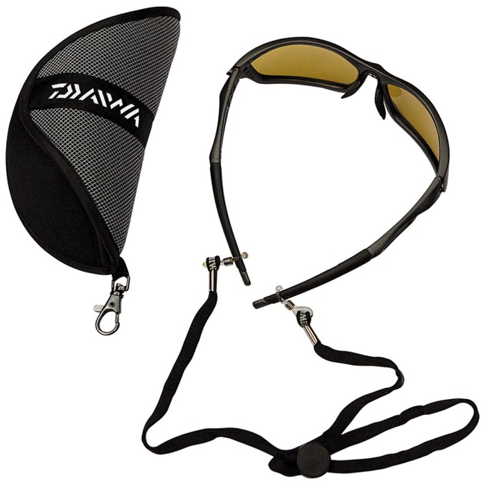 Totally polarised Daiwa sunglasses, each pair comes supplied with hard case and lanyard.