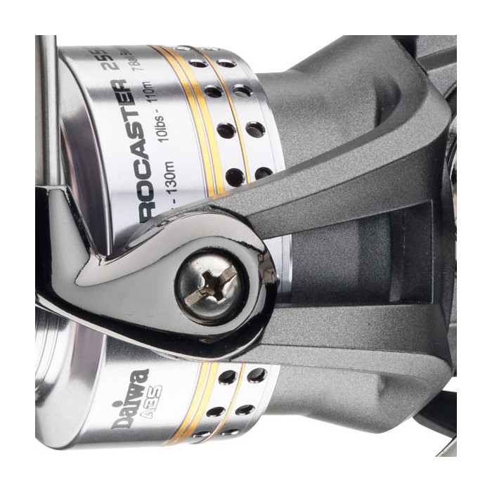 The Procatser X is supplied with an aluminium ABS spool. ABS is Daiwa’s patented tapered spool design, which works to let the line from the spool in large coils – significantly reducing the risk of wrap-arounds and increasing the distance you are able to achieve on the cast. Air Bail is Daiwa’s patented hollow tubular bail arm design. Smooth and free from protrusions, this bail arm ensures that even loose line can slot back onto the line roller with ease. This line roller is fitted with Twist Buster technology – a feature which not only eliminates the risk of line twist, even when using a thing mono or a braid, but also significantly reduces the friction on the line.