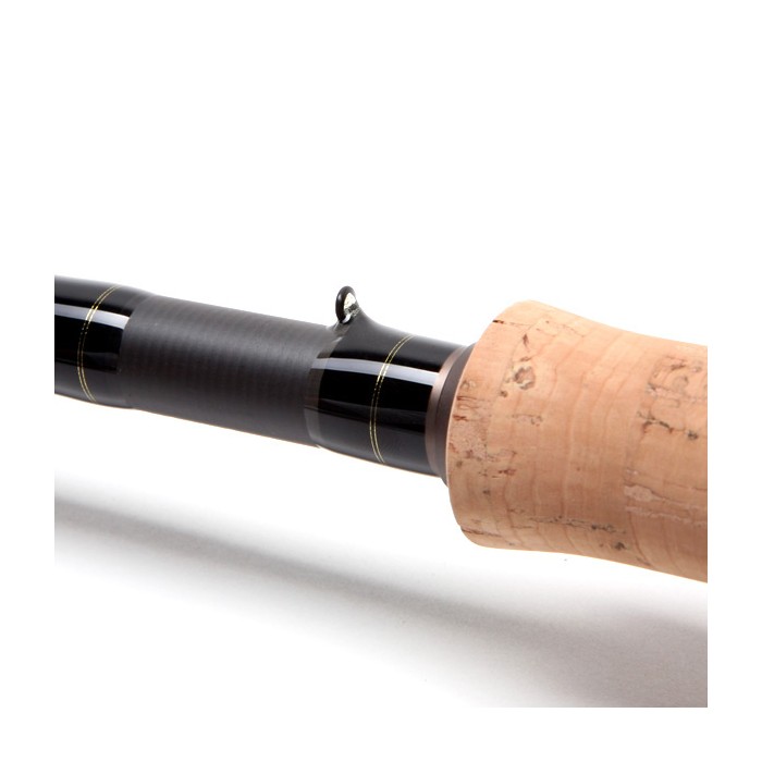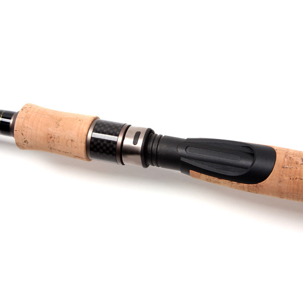 The distinctive cork handle features a down locking hood with carbon mesh collars on the fore grip and butt.