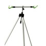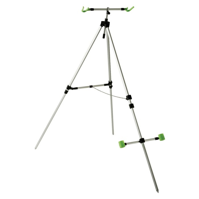 The telescopic legs, rod rest arms and cup arms are all telescopic, locking securely by way of a non marking lever lock system. Extending to well over 1.75m in height each leg features a hard metal ground spike. When assembled the tripods height can be finely adjusted through the central column.