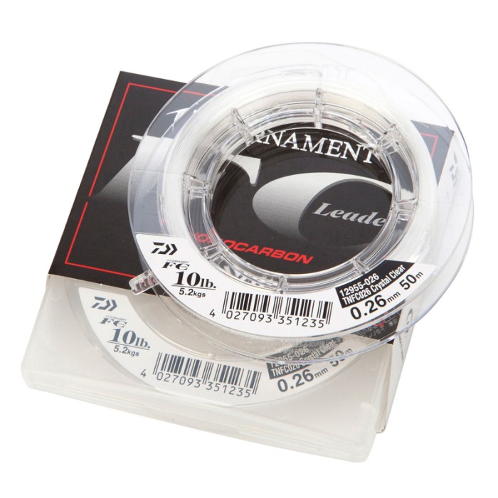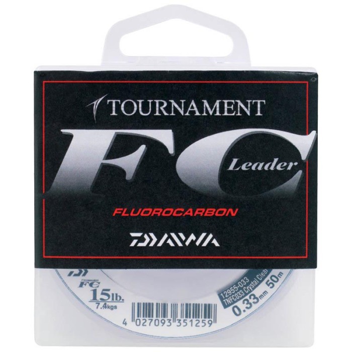 Daiwa Tournament Fluorocarbon, Tournament Fluorocarbon is manufactured using the latest Japanese fluorocarbon. High abrasion resistance combined with superior knot strength puts its performance above many other fluorocarbon options. Tournament FC is the perfect tippet material for fresh-and saltwater fishing.