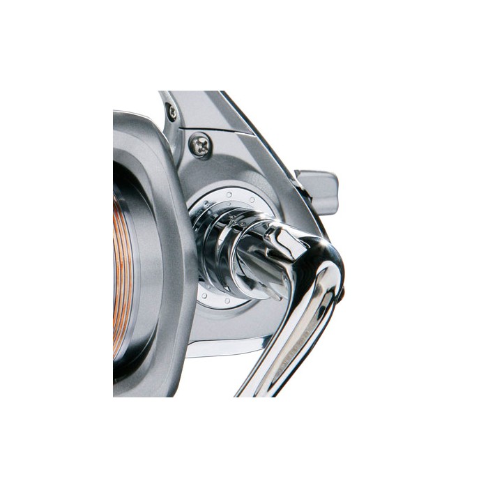 fishing line as it reduces the friction on the line from the roller, too. This reel also features Daiwa’s patented Anti-Backlash System (ABS) spool. This spool has been designed so it has a large diameter that grows towards the spool head. This means that line can unwind in large even loops, once again reducing the risk of line twist and enabling even longer casts.